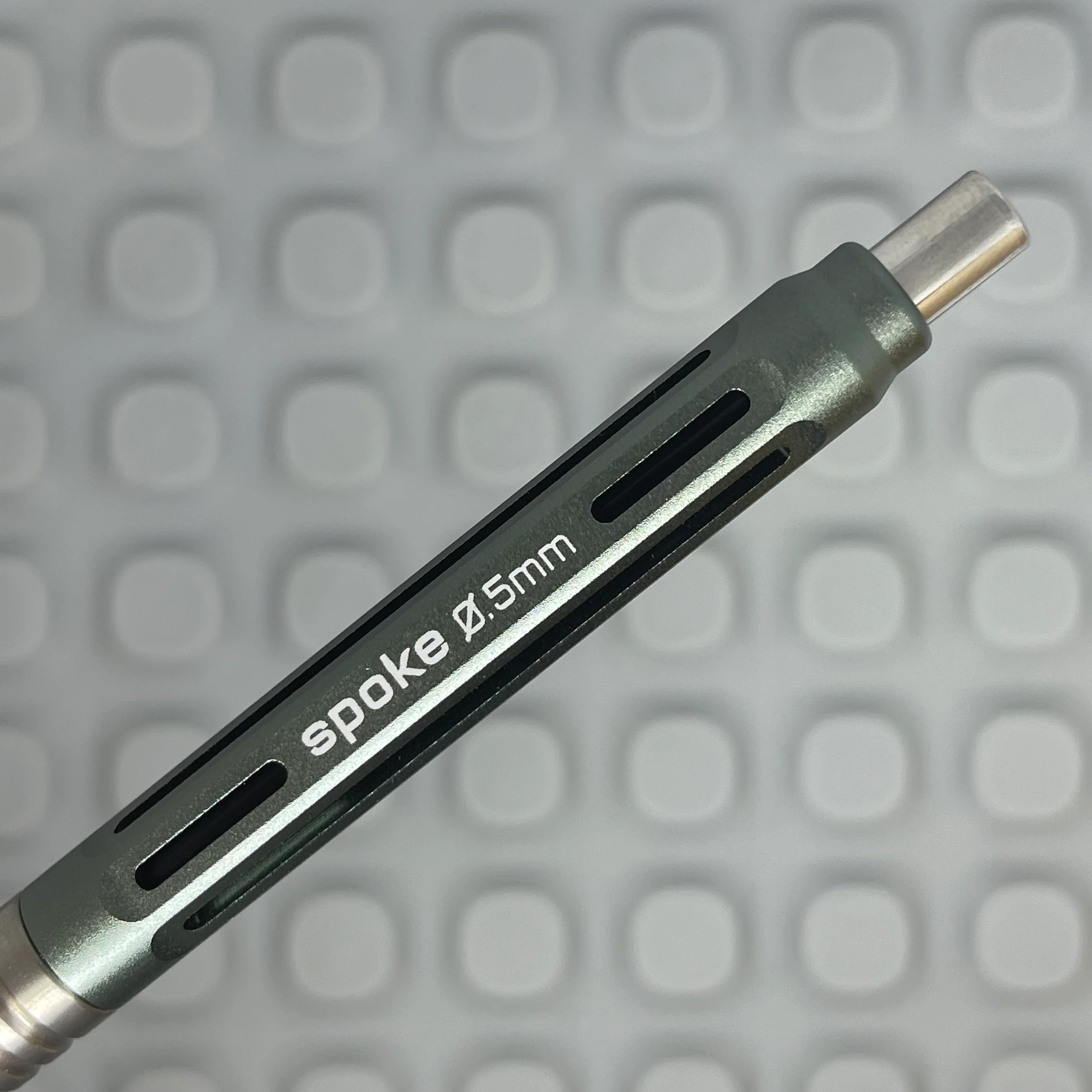 For this hack, we started with a gunmetal 0.5mm Spoke Model 4 Supergroove pencil with Titanium grip. The grip was torched to a Bronze color then brushed to to a semi-shiny appearance on the outer grip, leaving a bronze look in the groove. It's a cool two-tone look.